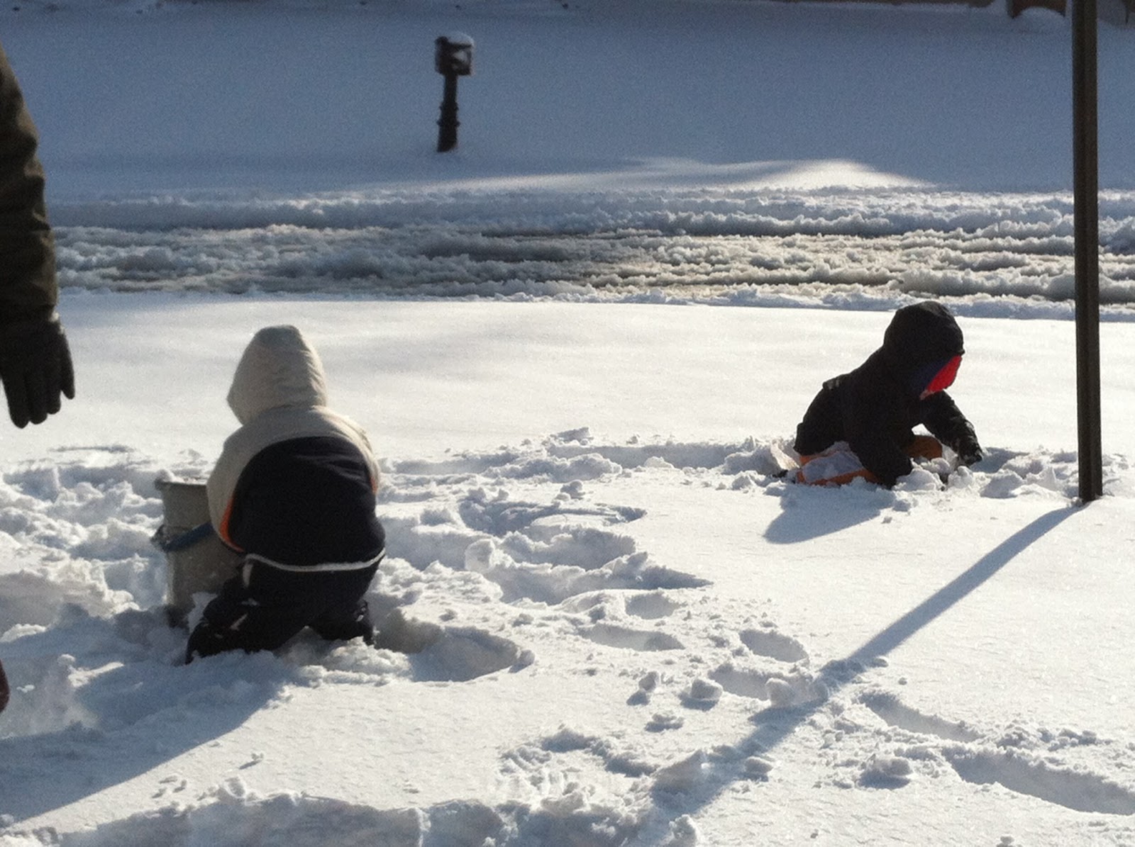 Another sad time was when we said good-bye to our gingerbread train station. Both boys took their turns eulogizing it and eating a piece of candy off of it before its demise.