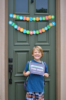 Another tradition - tracing and cutting out hand prints on the first day of school.